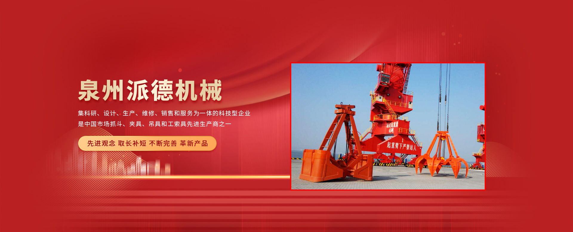 泉州派德機械有限公司成立于2012年5月,位于全國文明的古城福建泉州,公司擁有各類型專業(yè)員工82人,其中高級工程師1人,工程師4人,助理工程師5人,是一家集科研、設計、生產(chǎn)、維修、銷售和服務為一體的科技型企業(yè),是中國市場抓斗、夾具、吊具和工索具先進生產(chǎn)商之一。產(chǎn)品采用國內(nèi)外先進的設計方案、技術(shù)規(guī)范、制造過程、工藝流程和服務,憑借在抓斗、夾具、吊具和工索具領(lǐng)域的超前設計理念和成熟的技術(shù)、工藝和管理,在抓具領(lǐng)域迅速崛起。